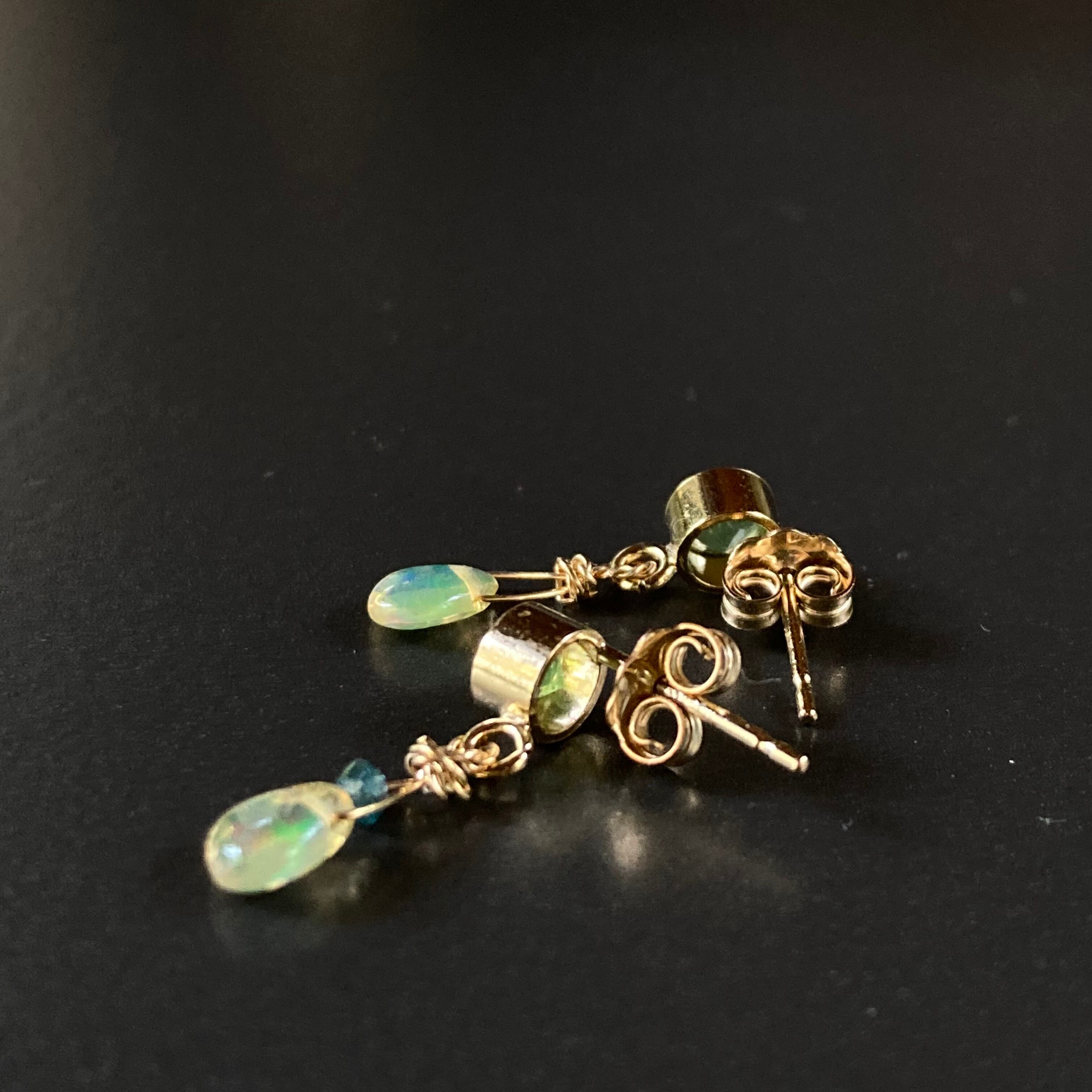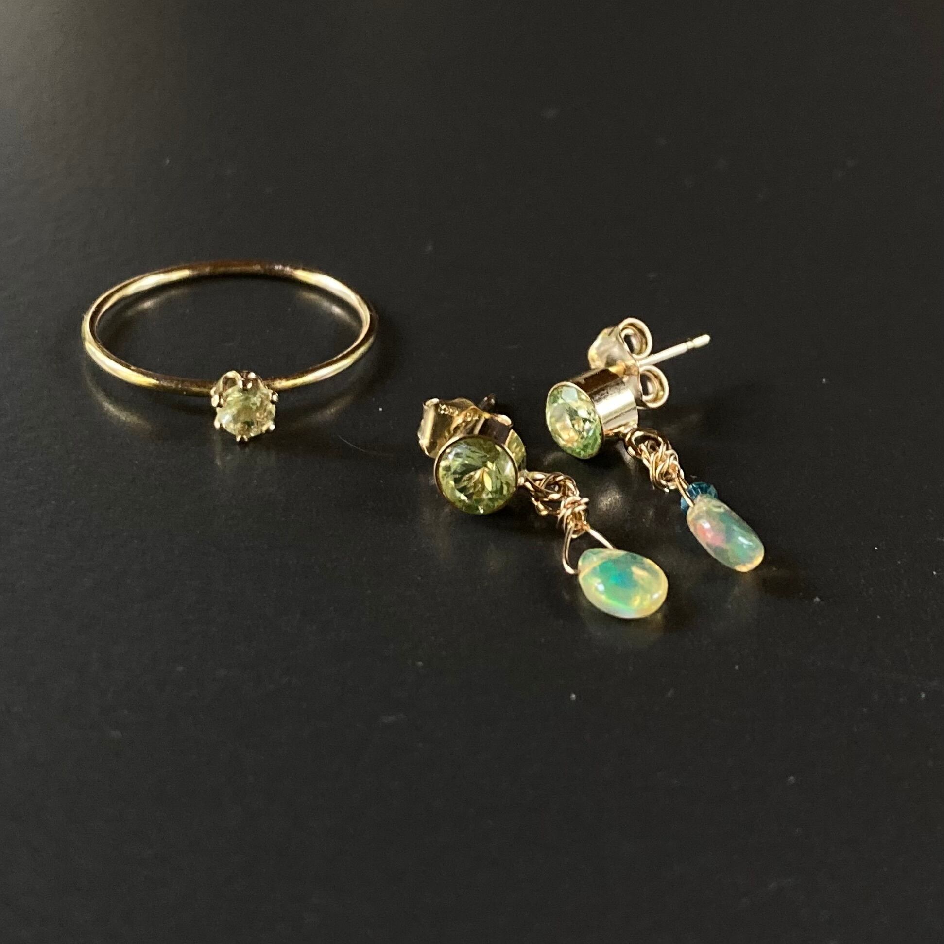 14kgf、しずく型オパール、ウランガラス、小さなブルーダイヤモンド