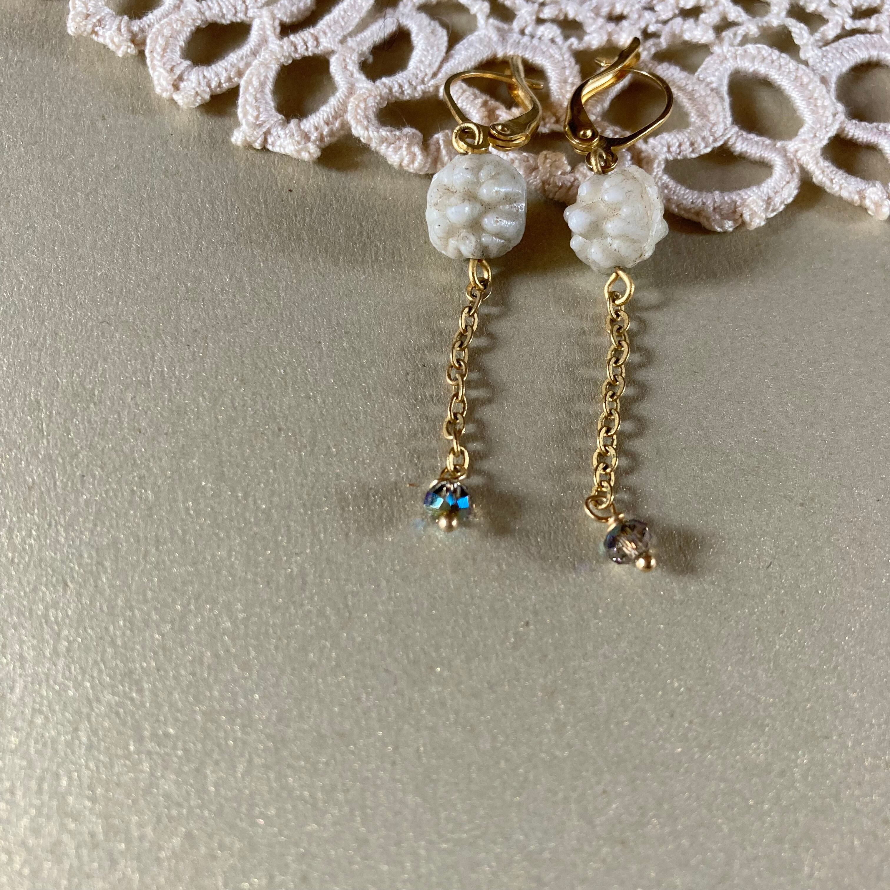 乳白色の立体ガラスビーズはフランスから届いたアンティークです。